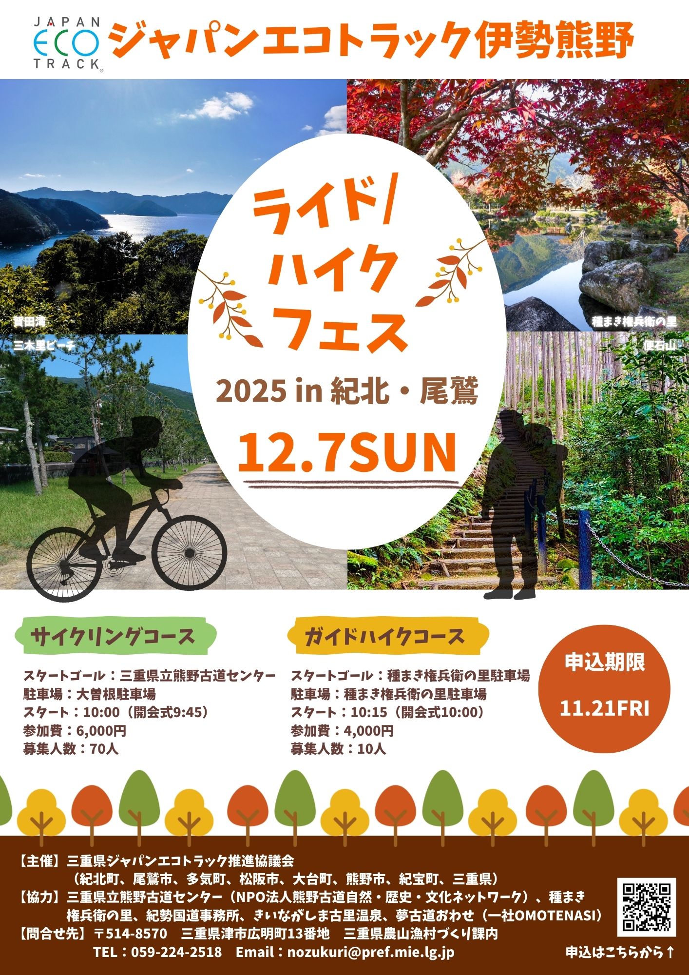 ジャパンエコトラック「伊勢熊野」の紀北・尾鷲ゾーンにて、サイクリングハイキングイベントを開催します!