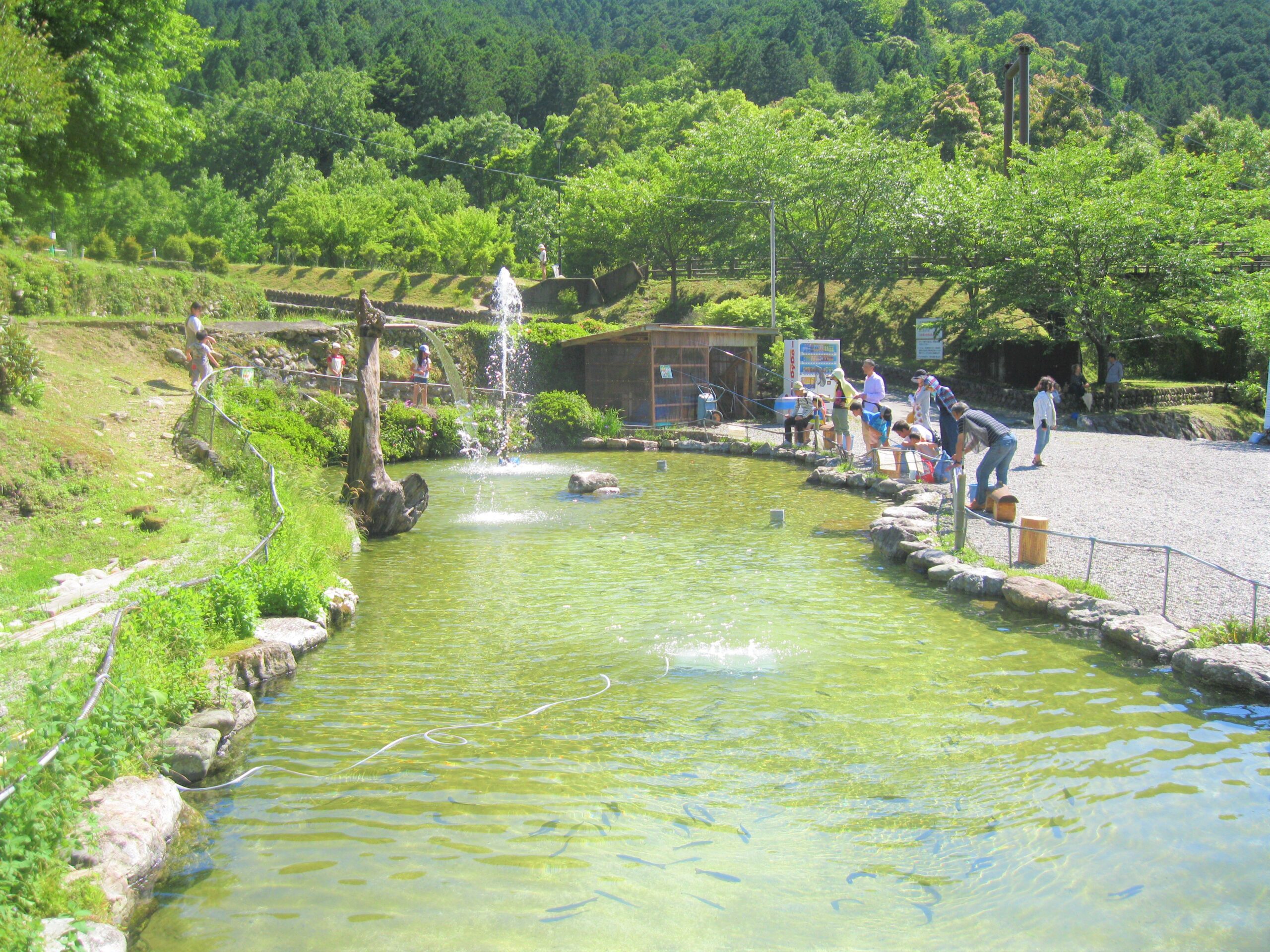 澄んだ空気と緑に囲まれた会場で、子どもから大人まで気軽に釣り体験が楽しめます。