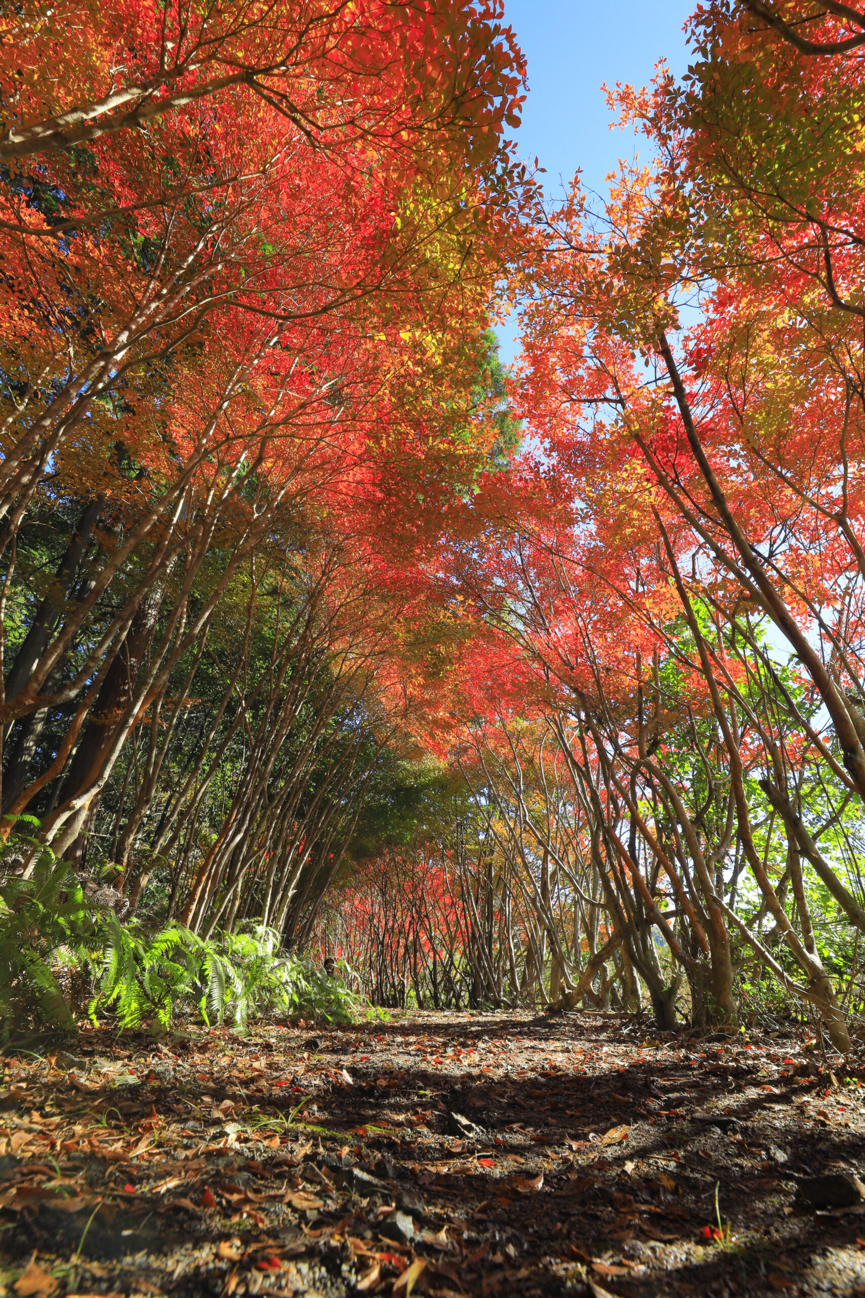 紅葉と桜の隠れた名所で、紅葉は真っ赤に色づく数十本ものモミジが美しい!見頃は他のスポットより少し遅めで、例年12月初旬まで楽しめます。