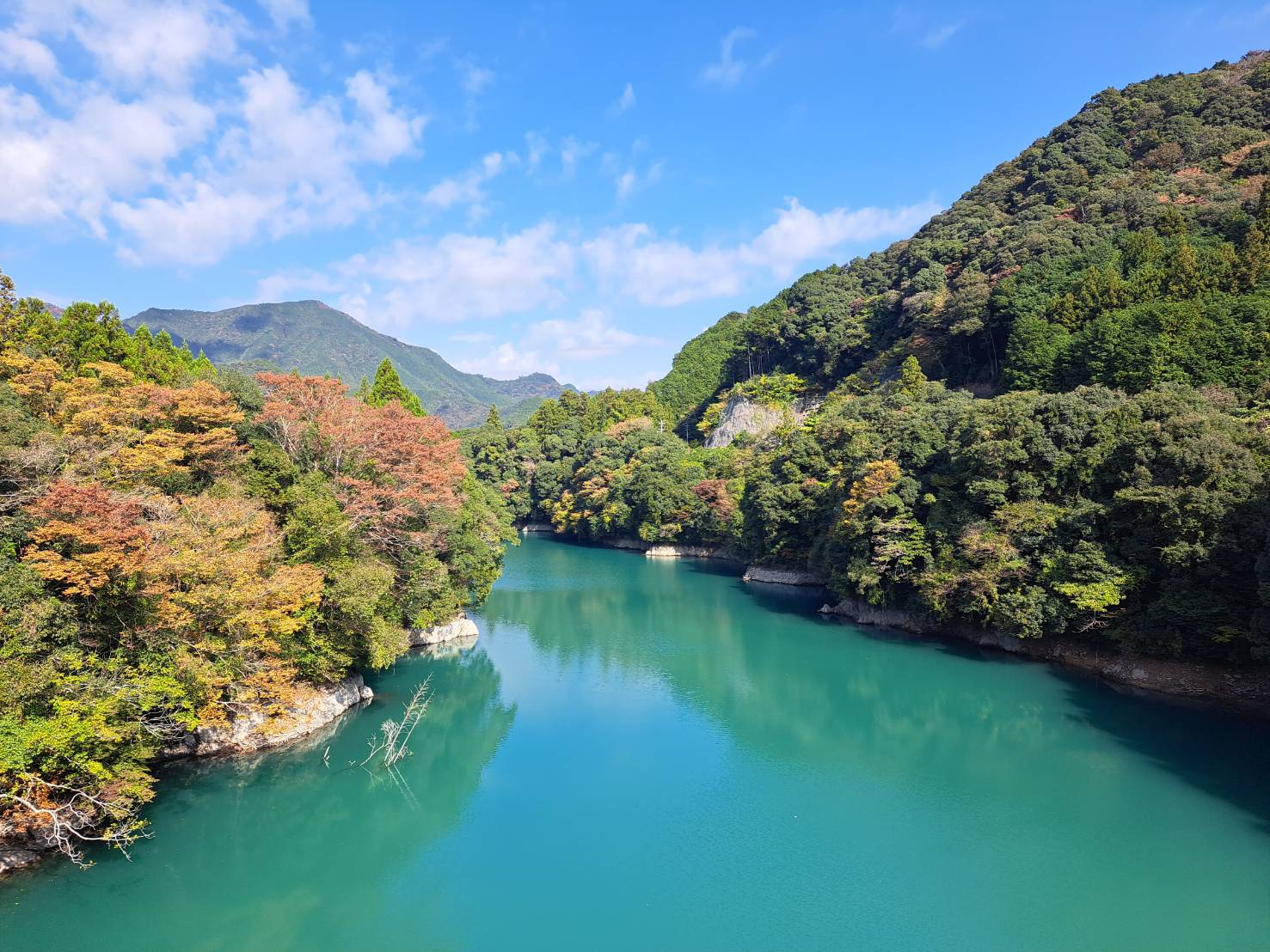 三瀬谷ダム湖、大台町を流れる清流「宮川」沿いの木々も、紅葉を見せてくれるものがちらほら。