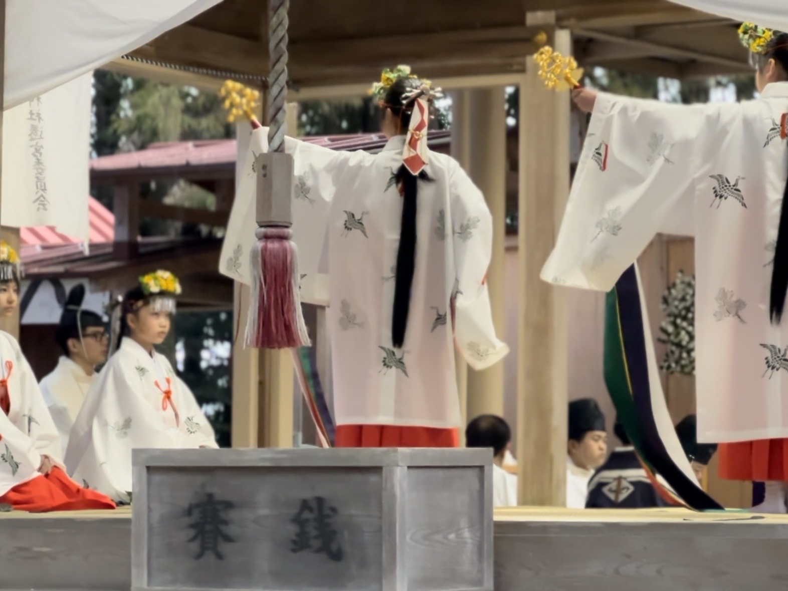 まずは、祝詞と舞の奉納。舞姫は地元「日進小学校」の児童が務めます。
